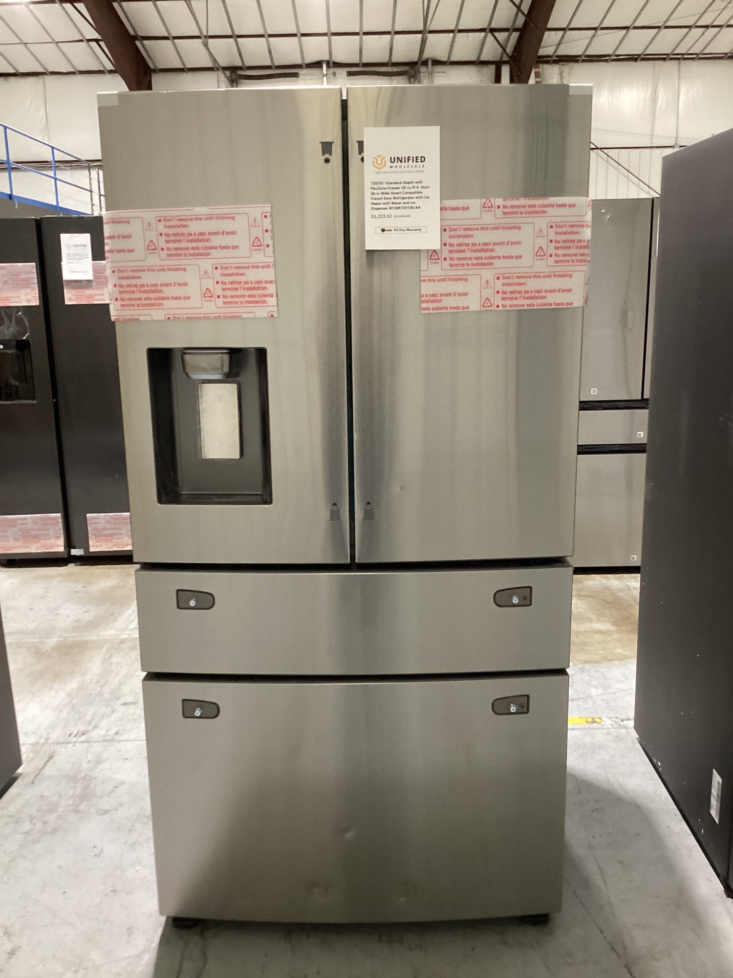 T2ID30 -Standard-Depth with FlexZone Drawer 28-cu ft 4 -Door 36-in Wide Smart Compatible French Door Refrigerator with Ice Maker with Water and Ice Dispenser RF28R7201SR/AA is backordered and will ship as soon as it is back in stock.